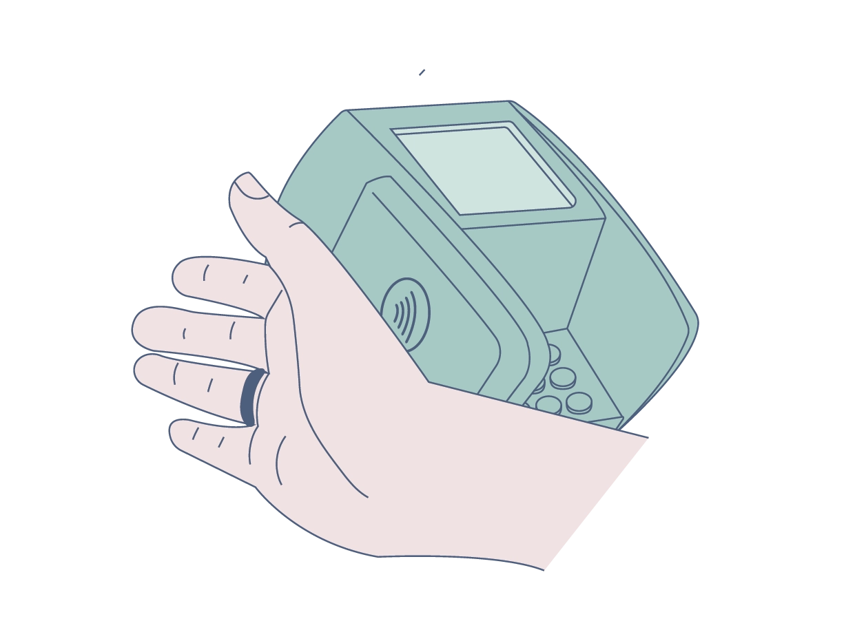 HyperRing uses NFC to make contactless payments, and only works when the ring is within 3cm of the POS terminal. Below are our recommended hand positions for getting the strongest signal from contactless terminals.