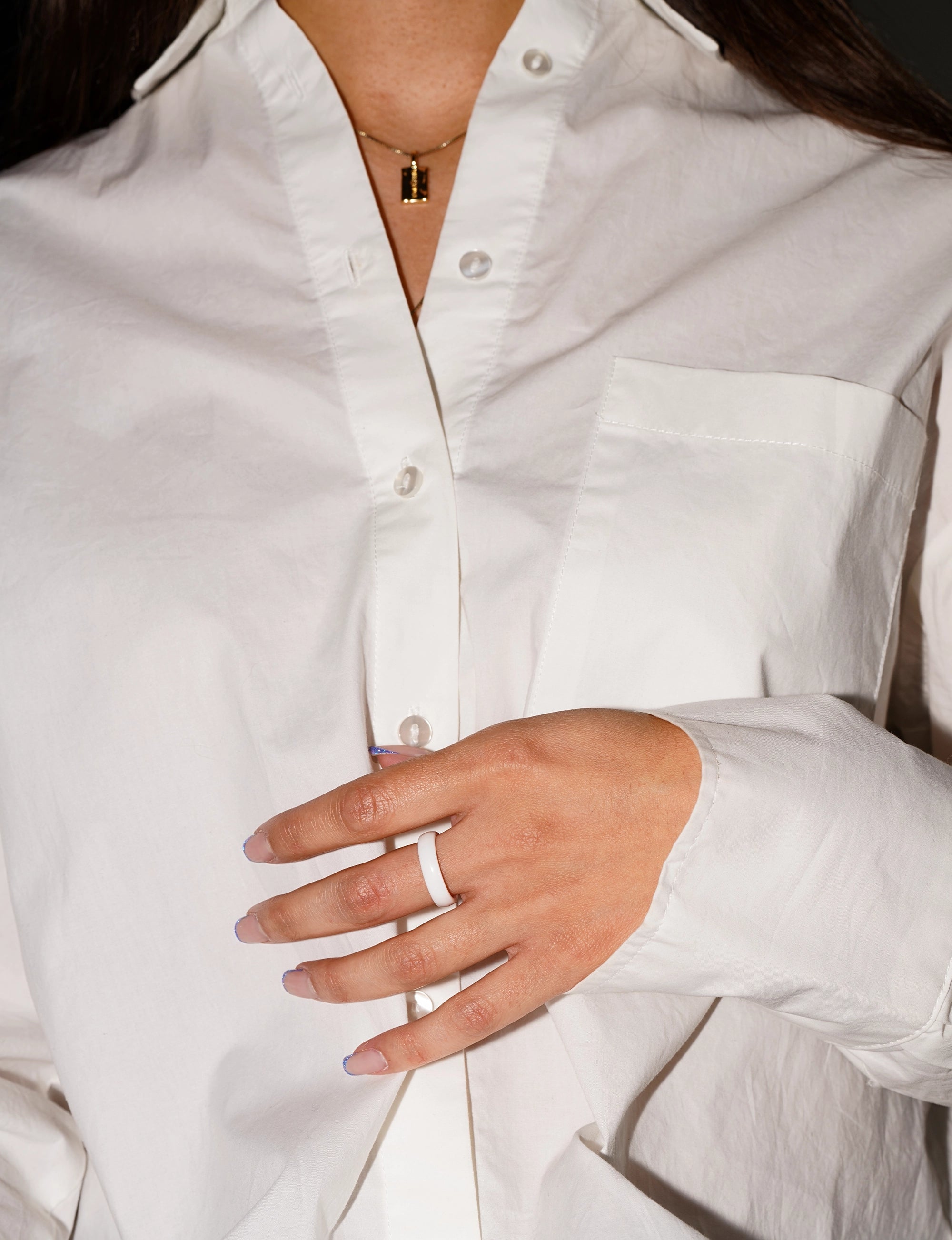The Aurora Lumina HyperRing features a smooth, radiant white ceramic band, with its shine reminiscent of mother-of-pearl. With its clean and contemporary charm, it exudes quiet grace and enduring style, ideal for those who are drawn to effortless elegance.
